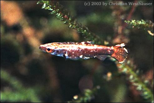Jungfisch von Nannostomus marginatus, ca. 10 mm TL. |