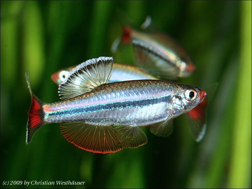 Blutsalmler (Hyphessobrycon eques) Aquarium mit Tanichthys micagemmae und Zwerggarnelen (80x40x50 cm).